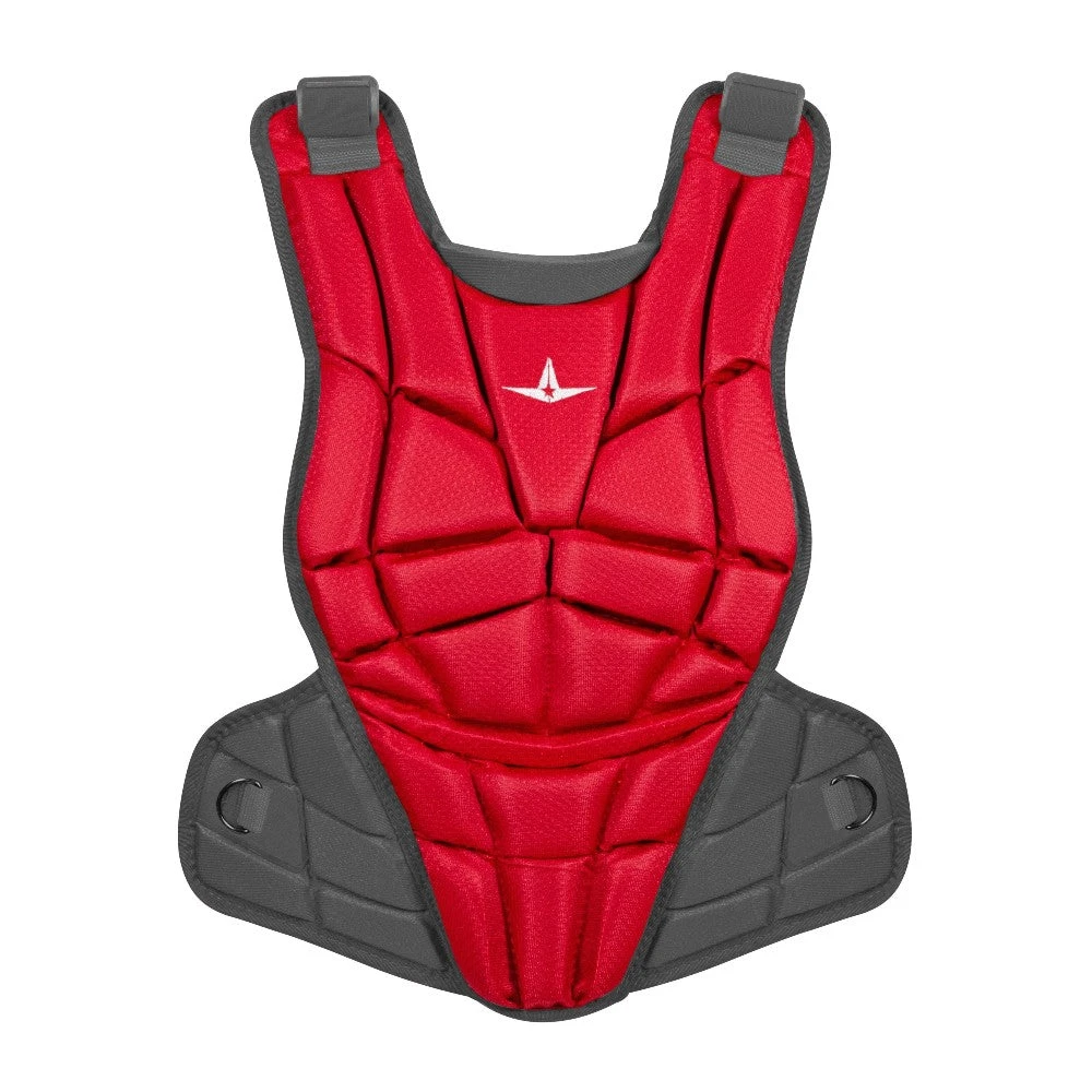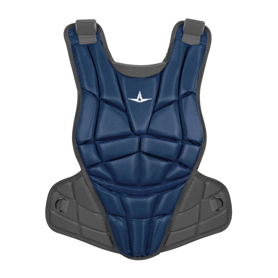 The All Star AFX fastpitch chest protector is designed to conform to the female athlete. Its contoured neck collar and fully adjustable Y-back harness creates optimal flexibility and unrestrained movement. Multi-layered foam padding with built-in sternum plates provide outstanding durability and protection. Lightweight and reliable, the All Star AFX fastpitch chest protector is what you want to be wearing when you’re behind the plate.