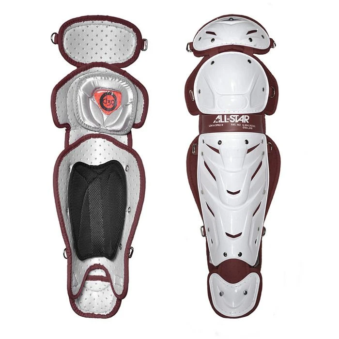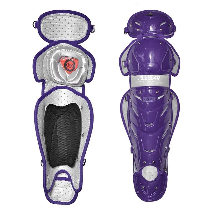 The All Star Vela Pro Fastpitch Softball Leg Guards are lightweight and mobile, designed with a double-knee and UltraCool ventilation that keeps you protected and comfortable behind the plate. Fortified with the Patella Plus D30 knee pad that reduces the impact of balls and an adjustable anatomical shin pad for convenience. Wraparound sides and toe plates allow for added protection and the AEGIS Microbe Shield lining eliminates bacteria and odor.