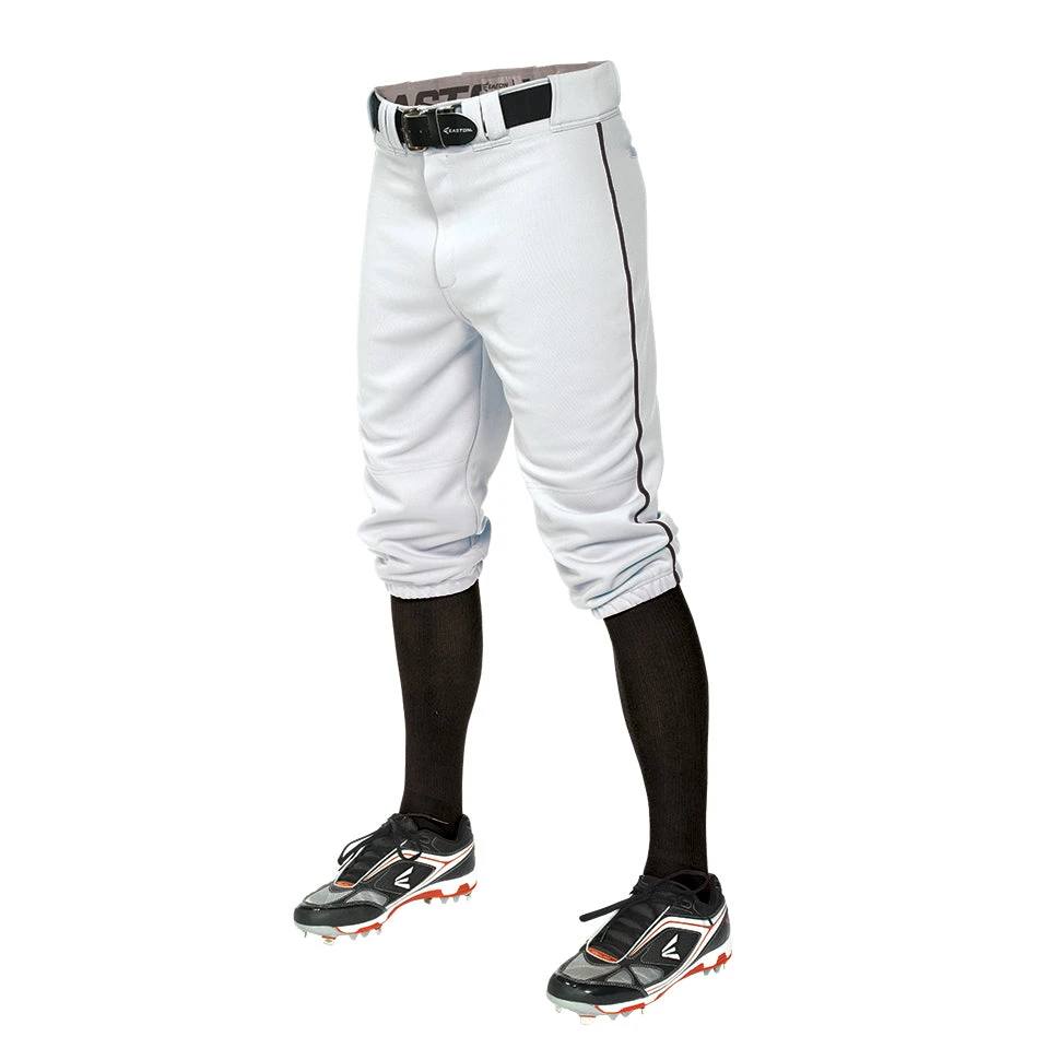 The Easton Adult RIVAL + Knicker Piped Pants A167162 combine a big league look with superior craftsmanship. It also features a design that forms the most sophisticated, personalized baseball pant on the market. The 100% polyester blend wicks away moisture from the skin for additional comfort. The waist is specially fit with a two-color Easton elastic design and a belt loop system to avoid unwanted sagging or riding up. The double back welt pockets and embroidered Easton Screamin E logo complete the major league look. The double reinforced knees prevent abrasions on vulnerable skin. A double metal snap closure and a metal zipper reinforce the fit and ensure durability. Superstitious players can breath a sigh of relief with these pants, as they are tailor-made for them. Additionally, the Easton Adult Rival + Knicker Piped Pants A167162 are available in a wide variety of different color assortments. This ensures the ability to match your team colors and have home and away options as well.