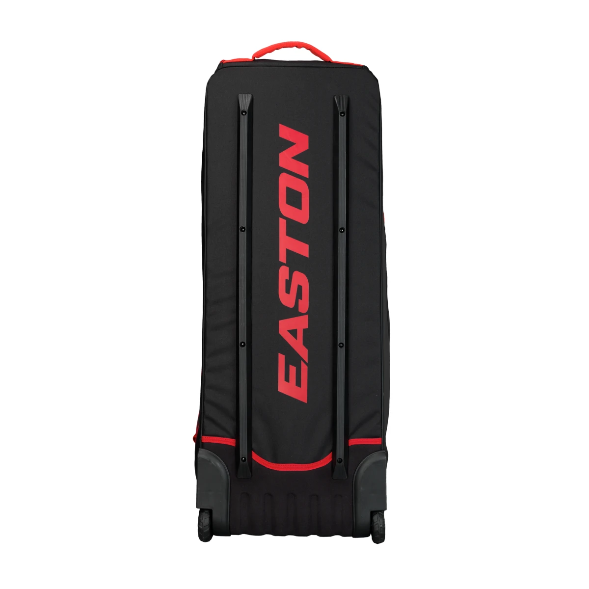 The Easton Dugout wheeled bag is an essential piece of equipment. It is built like a hybrid of a traditional position player bag and catchers bag. The bag is designed to hold up to five bats. It is large enough to hold catchers equipment, but is not oversized like most bags that can handle catchers gear. The Easton Dugout wheeled bag is equipped with with rugged inline wheels to provide wheel assistance for getting you and your gear to the field. These bracketed inline wheels provide added levels of strength, durability, and efficient transportation. In addition, vented pockets minimize odor. This allows the equipment held within the bag to dry faster.