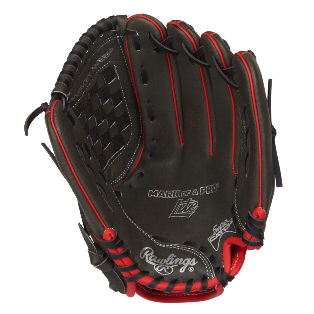 Rawlings Mark of a Pro Light Series Gloves have an innovative mesh back construction, which allows for the removal of the extra weight that a glove possesses. This is necessary for younger athletes and this will give them extra flexibility as well as a swifter hand motion. The Rawlings Mark of a Pro Light MPL115DSB 11.5 in Youth Baseball Glove has palm and index finger padding, that provides an extra coating of protection for young playeríëí__’Çíëí_s hands. This mitt also obtains a full leather palm design, which assists in the pockets shape retention. Athletes performing with this glove will surely benefit from a custom fit Velcro strap, providing a snug fit.