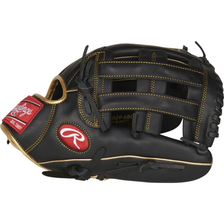 Using Black leather that features gray accents, this glove has a great look. The R9 R93029-6BG is for outfielders as it is the ideal size of 12.75 inches. Also, the glove is great for right, left or center because of its Pro H web design. Run out onto the field with the calm, cool and confident feel that you need succeed while wearing this glove. Made by Rawlings, this glove is guaranteed to be of the best quality. Founded in 1887, Rawlings remains one of the best companies in the game. The Rawlings R9 12.75 inch Outfield Glove R93029-6BG will not fail to meet your expectations. So, order one of these Rawlings outfield gloves here today from Baseball Bargains!
